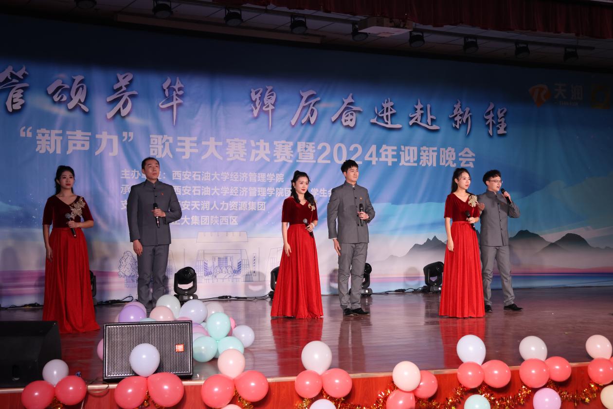 12月27日,经济管理学院第十七届“新声力”歌手大赛决赛暨2024年迎新晚会在我校鄠邑校区腾辉大学生活动中心成功举办。晚会支持单位代表、天润人力集团高级合伙人、陕西天润德凯信息技术有限公司总经理、经济管理学院2012届人力资源管理专业毕业生徐超应邀出席。校党委副书记、纪委书记王辉强,总会计师樊晓民出席晚会并颁奖。党政办公室(鄠邑校区管理办公室)、统战部、学生工作部、校团委、计算机学院负责人,经济管理学院党政负责同志、各教工党支部书记、各系办主任和师生代表500余人参加晚会。