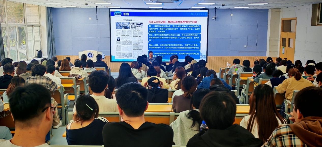 4月24日下午,由共青团西安石油大学委员会主办、经济管理学院承办的第380期石大青年论坛在鄠邑校区博览楼A110智慧大讲堂举行。本期论坛特邀经济管理学院副院长李春霄副教授担任主讲嘉宾,为全校师生带来一场题为《从美以伊战争看西石大青年的担当与使命》的专题讲座。